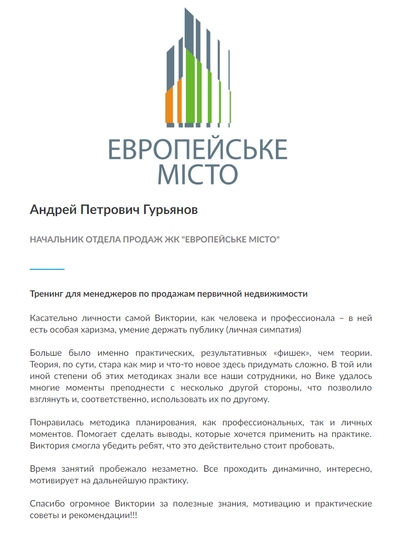По данной программе наша компания может провести корпоративное обучение, что позволит повысить профессиональные навыки Ваших сотрудников в удобное для Вас время, так как программа будет разработана с учетом специфики Вашего бизнеса и уровня подготовки группы